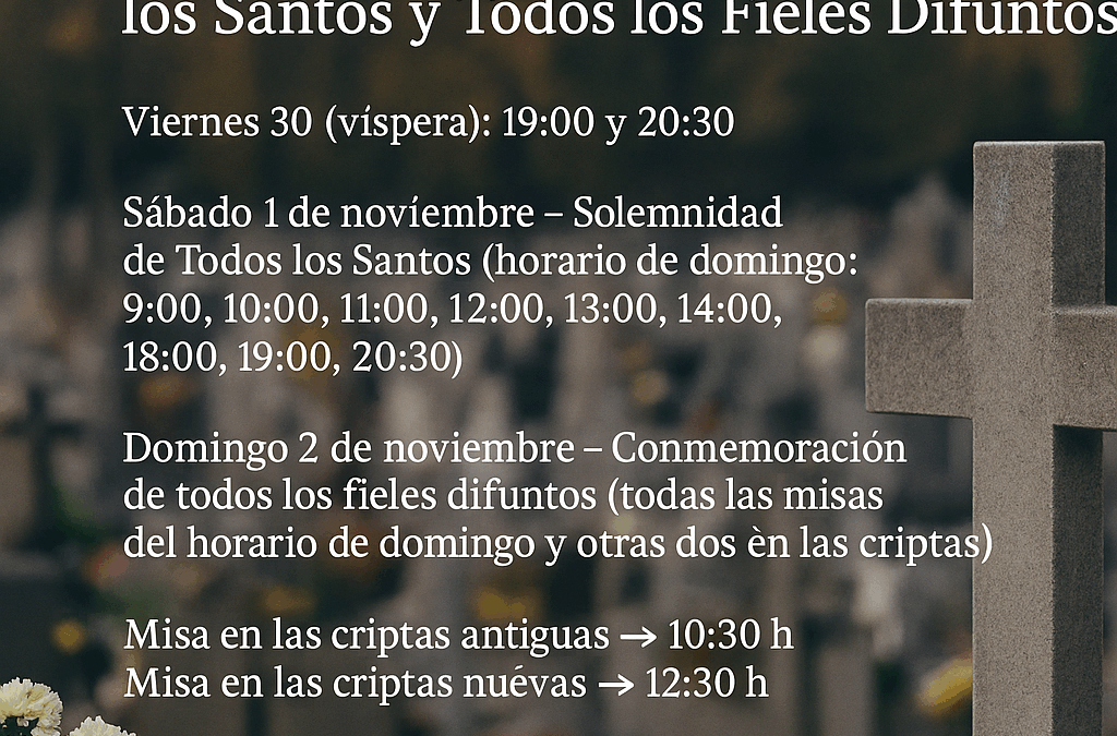 Sábado 1 de noviembre – Solemnidad de Todos los Santos (horario de domingo: 9:00, 10:00, 11:00, 12:00, 13:00, 14:00, 18:00, 19:00, 20:30)