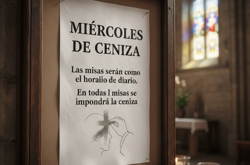 Cuaresma 2026. Miércoles de Ceniza Feb 16, 2026 | Actualidad Horario: mañana 8,9,10,11,12,13 tarde: 19, 20.30 (parroquial)